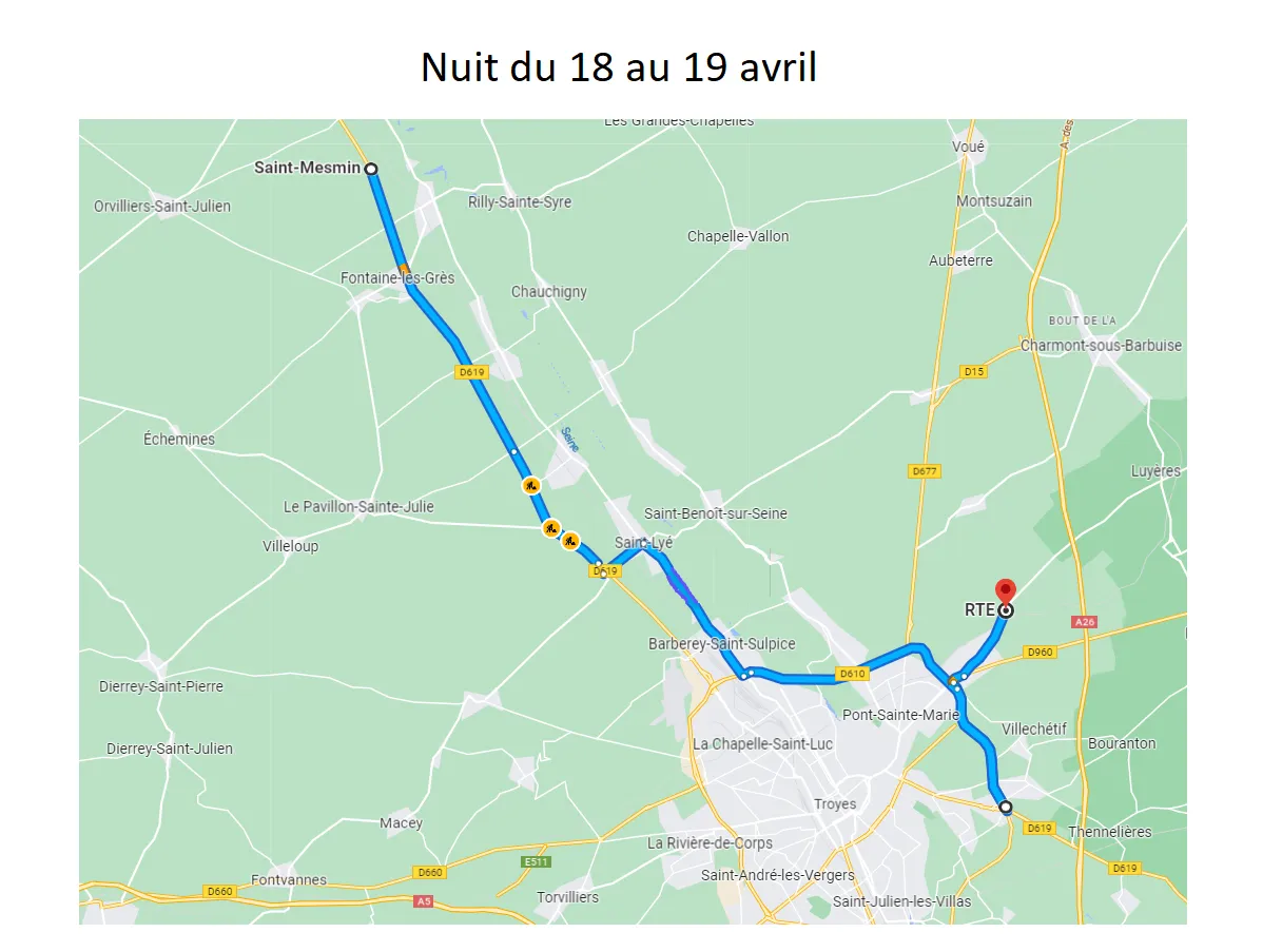 L’arrivée de cet équipement hors gabarit se fera par la route depuis Nogent-sur-Seine jusqu’à Creney-près-Troyes.