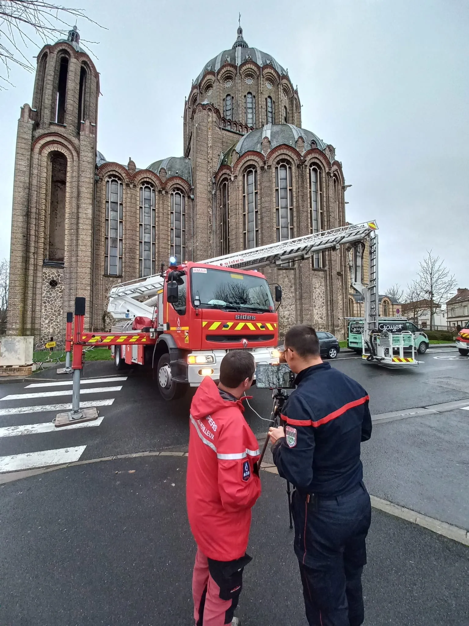 Intervention des pompiers à la basilique Sainte-Clotilde de Reims.