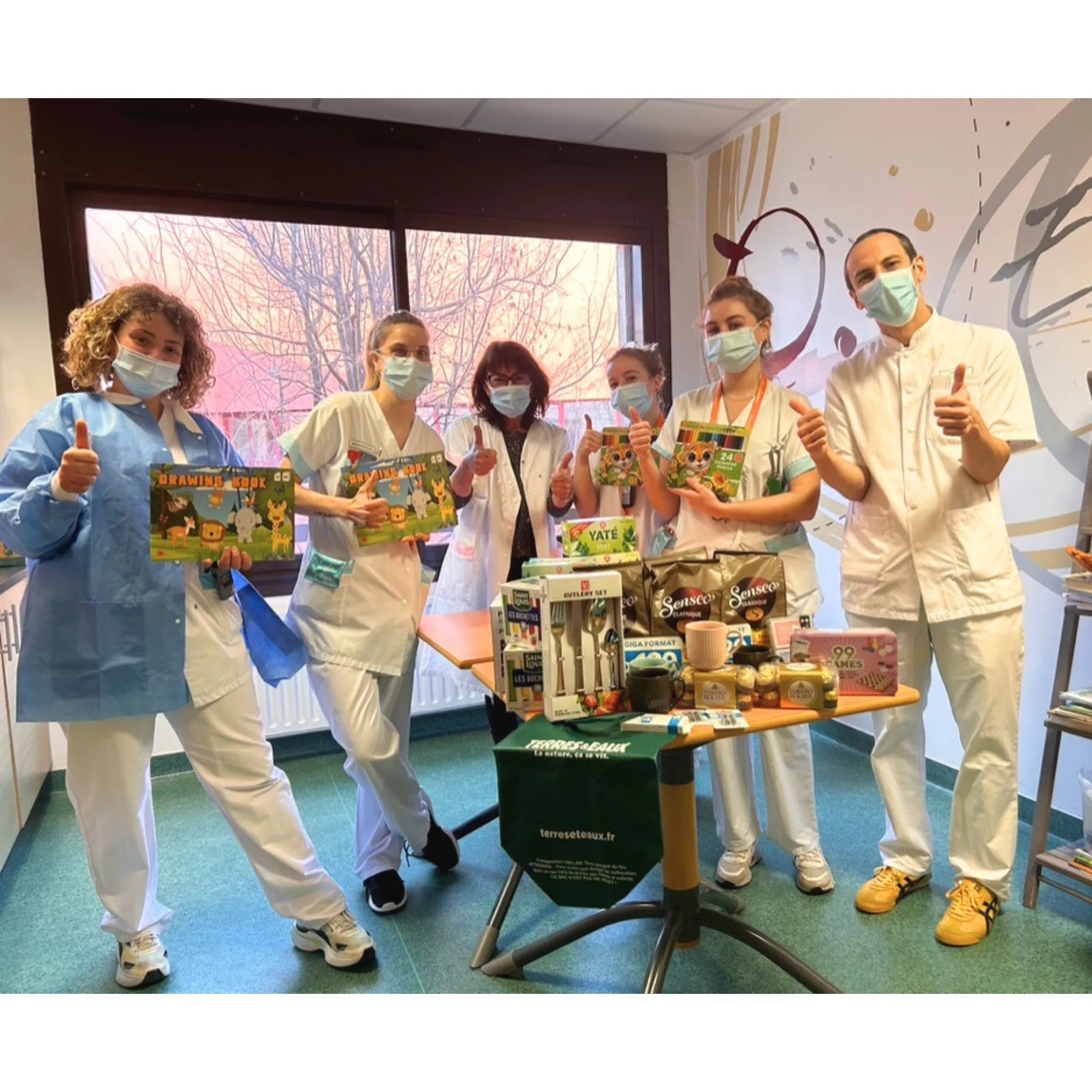 Les fonds récoltés ont permis d'acheter du matériel à destination des soignants, tels que du café et des couverts, du matériel pour les patients, tels que des livres de coloriage, des chocolats...Afin d'apporter du réconfort aux enfants.
