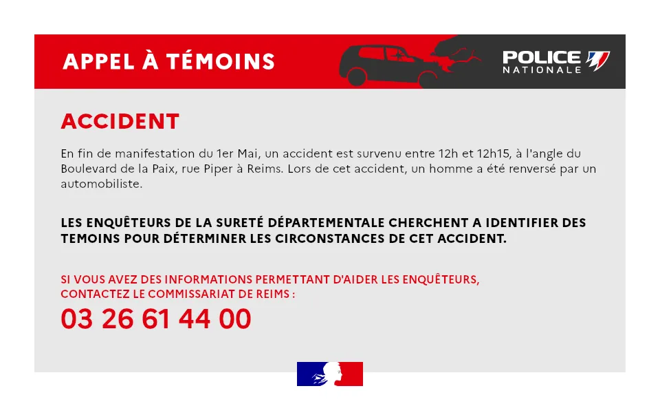 Un manifestant a été renversé au terme de la manifestation rémoise. La police cherche à connaître les circonstances de cet accident