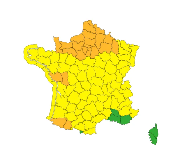 26 départements sont placés ce jeudi matin en vigilance orange.