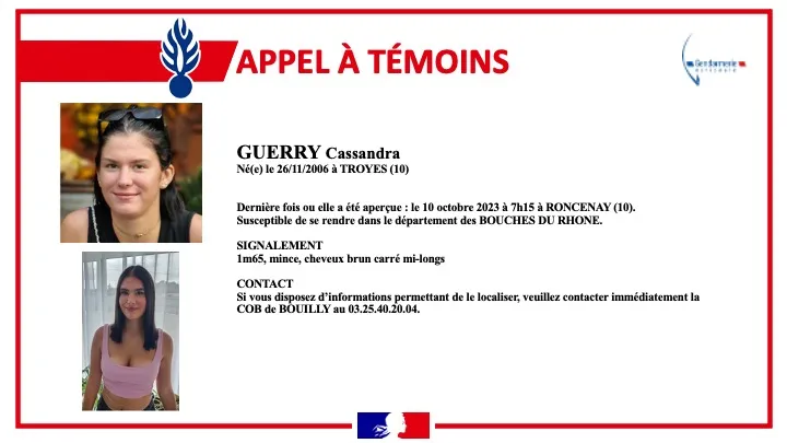 Selon les informations des gendarmes, Cassandra serait susceptible de se rendre dans les Bouches-du-Rhône.