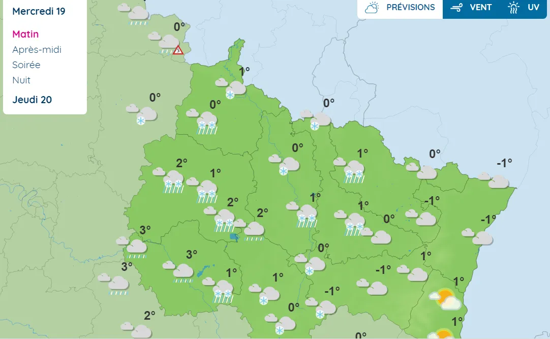 Quelques flocons de neige sont également attendus dans la matinée avant le retour de la pluie l'après-midi.